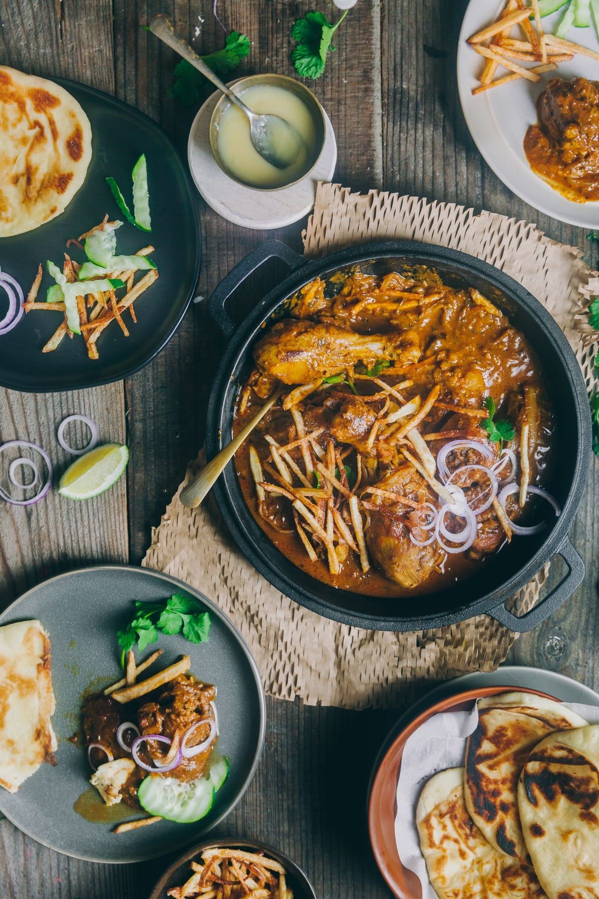 Spicy Indian dish featuring shredded chicken tikka in a rich sauce flavoured with garlic and whole red chillies